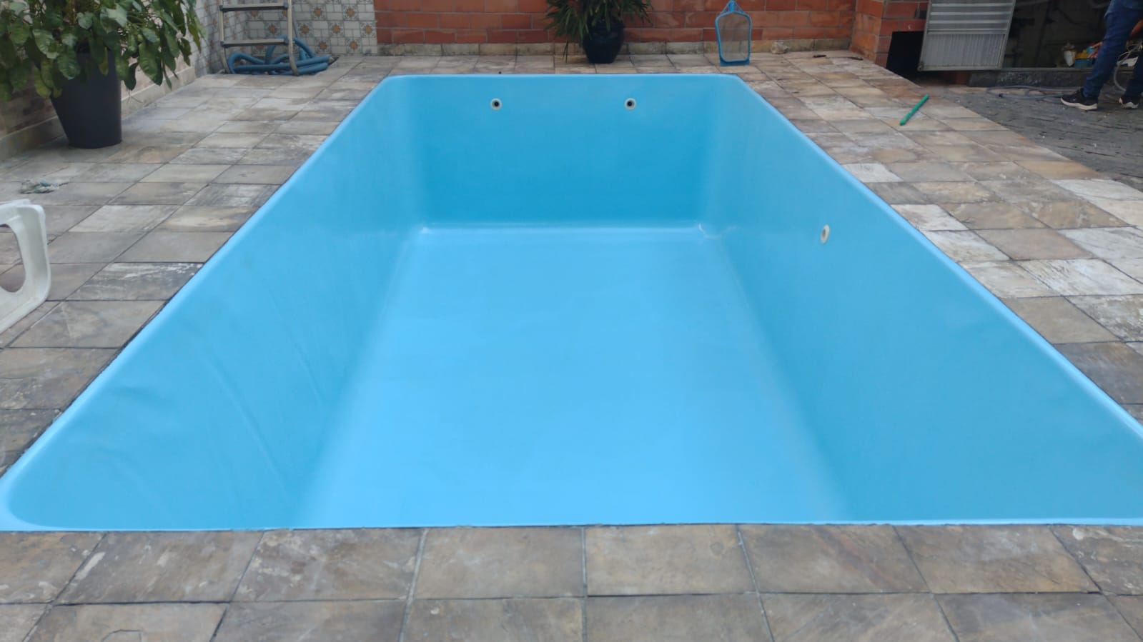 Você sabia que, periodicamente, é preciso pintar piscina de fibra? Em média, a cada 5 anos, porque a ação do cloro e do Sol descolore o tanque, deixando-o desbotado ou amarelado.